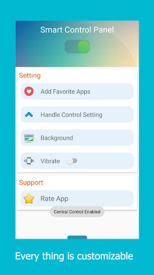 With Control Center app, you can customize more style, such as size, color, position, vibration.