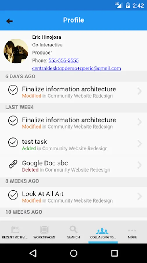 - Recent activity: See what your colleagues have recently created, posted, modified or said.