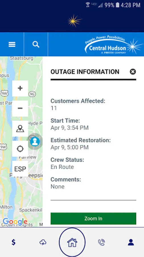 The Central Hudson Mobile App provides customers with account management tools and easy access to vital information.