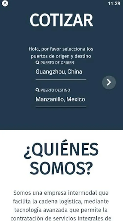 Mobile application for contracting comprehensive foreign trade services for importers and exporters of any type of merchandise.
