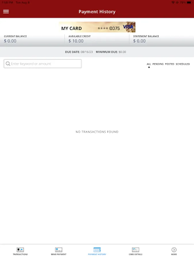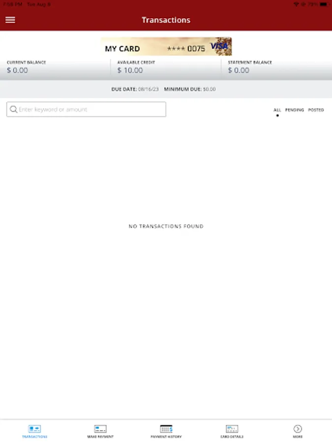 • View recent and pending transactions.