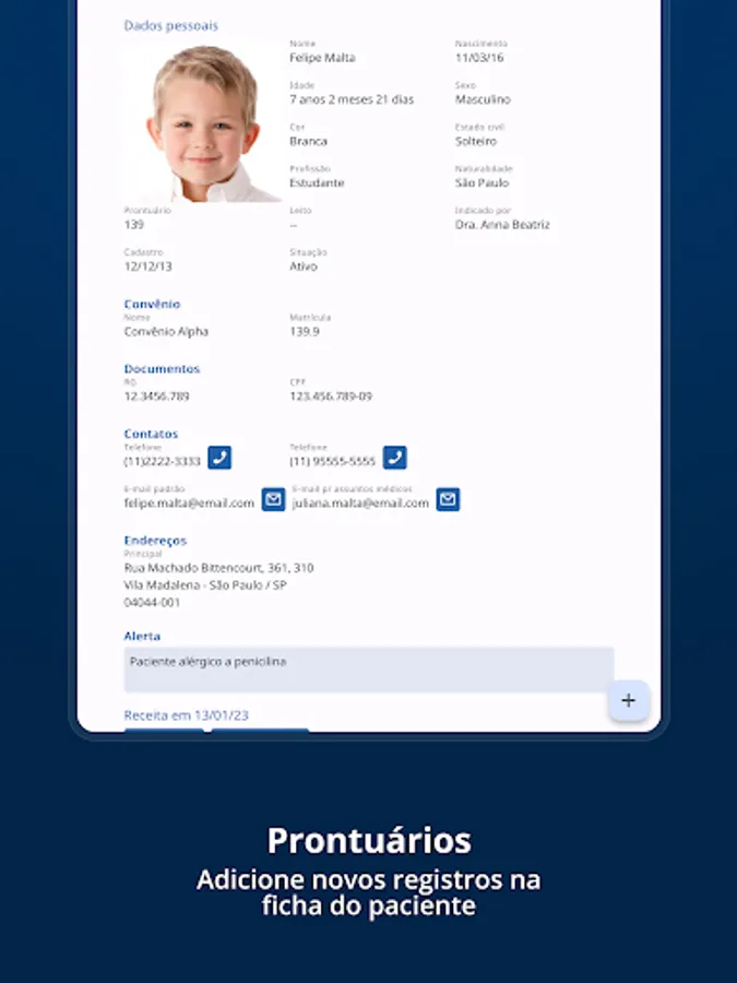You can include new texts and attach files to the patient's file, even offline. When you perform the sync again, the new records are added to your database.