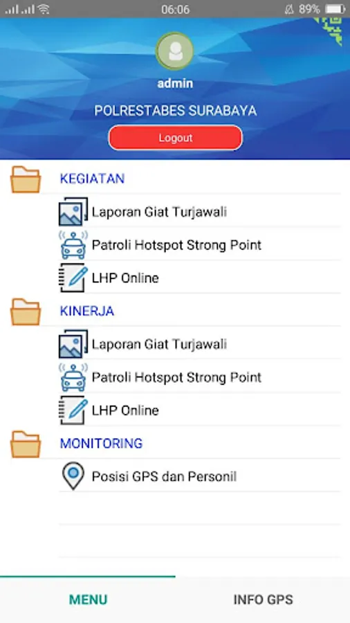 PATMOSURO APPLICATION, is an application developed for the internal needs of the SABHARA POLRESTABES SURABAYA police, in order to facilitate the management system of daily patrol activities.