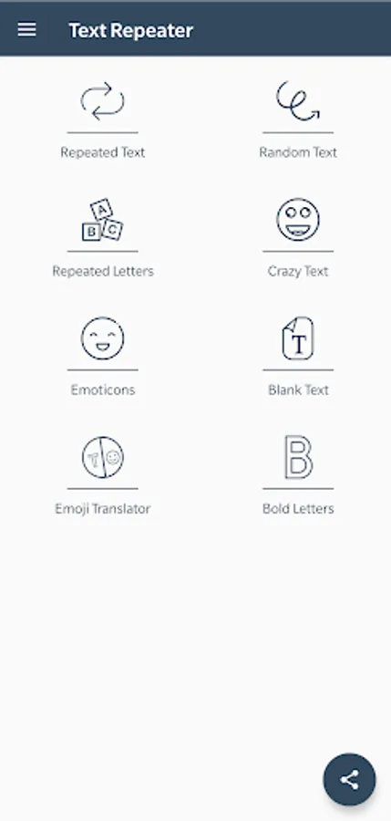 By using this application you can send the same message at multiple times. This app is combo pack for the all repetition app with a low size of the APK It is one kind of message repeater to send message repeatedly, and also you can set your repetition limit with new line text repetition. Using this app you can also make repeated letters using alphabet and emoji characters. Also, provide random emoji characters. Very easy to use and required few click for your message repetitions. Repetition process works asynchronously for longer repetition limits.