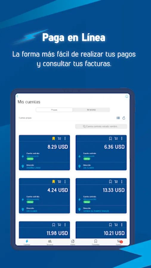 • If you are a tenant you can view the services you always pay for in your favorites section.