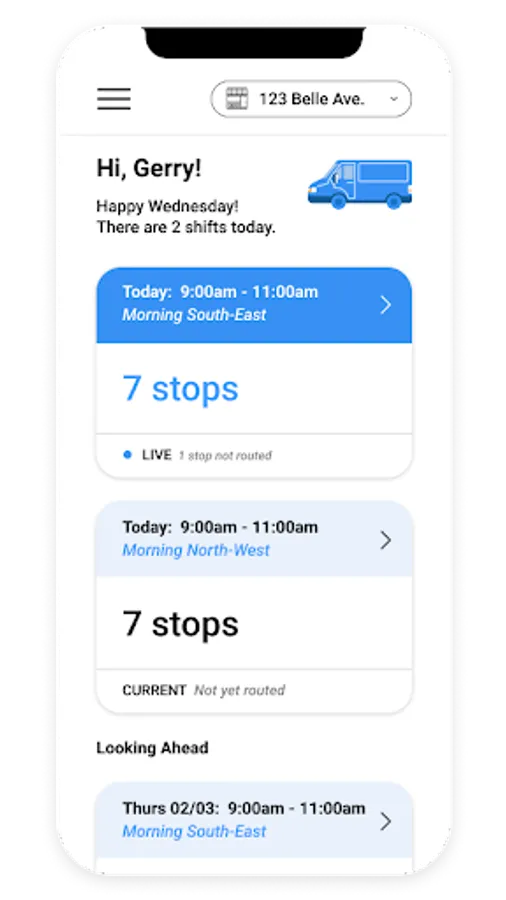 The Cents Driver App will provide your drives with a per-location breakdown of your delivery shifts for the day.