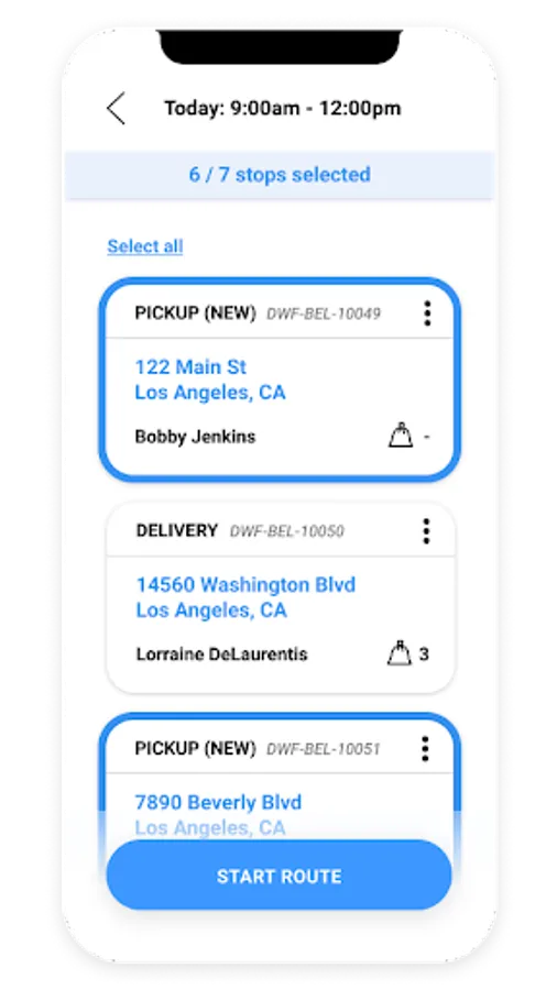From your homescreen, select the route you wish to begin, and notify your customers via text message that the driver is on the way.