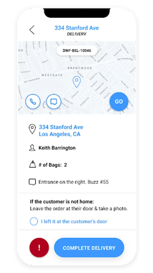 Drivers have the ability to override the number of bags picked up at the customer’s location, and are required to take a photo to record any contactless deliveries.