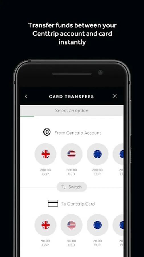 o Transfer funds between your Centtrip account and card(s) in seconds