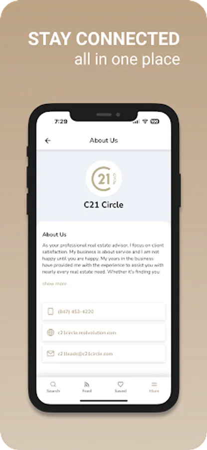 C21 Circle connects you and your real estate agent to ensure your home search journey is a success. Find the latest homes that match your must-haves, save open houses for later, schedule a tour of a home any time, and connect with your agent via C21 Circle. Plus, when you search for homes, your agent can see which listings are your favorite to help them better guide you towards your goal of home ownership!