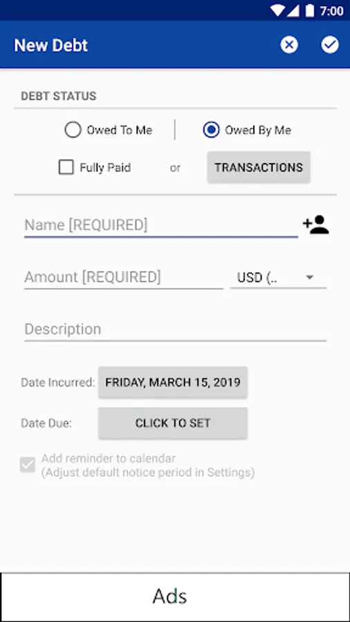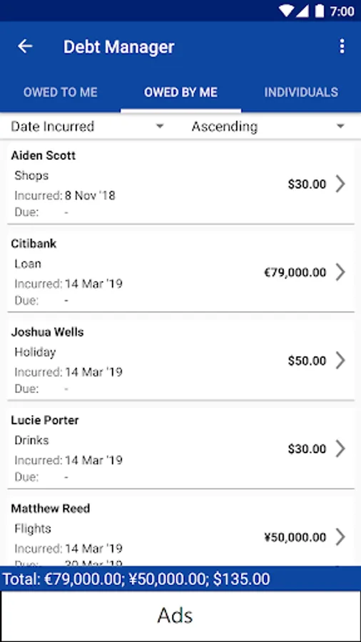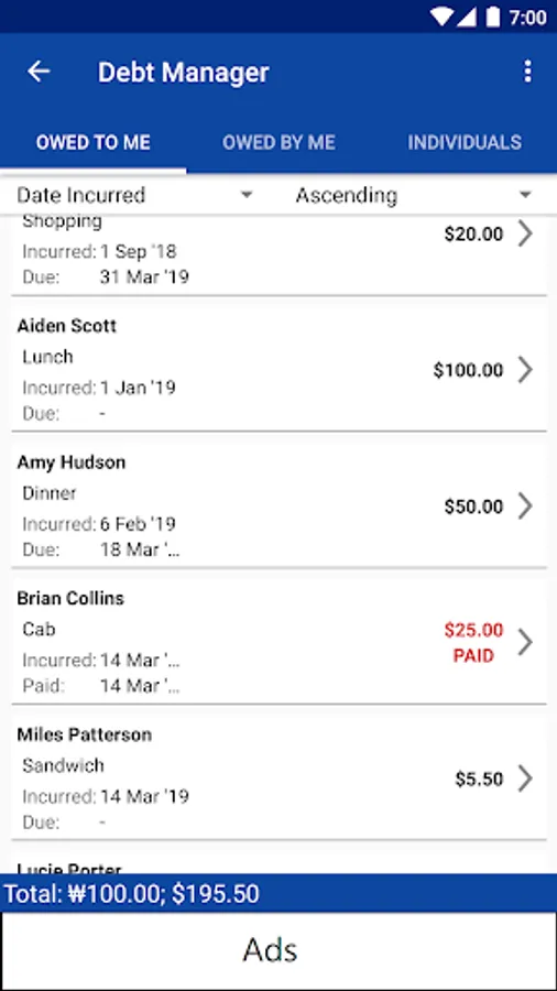 Designed for use by both individuals and businesses, Debt Manager is the perfect tool for keeping track of debtors (money loaned) and creditors (money owed).