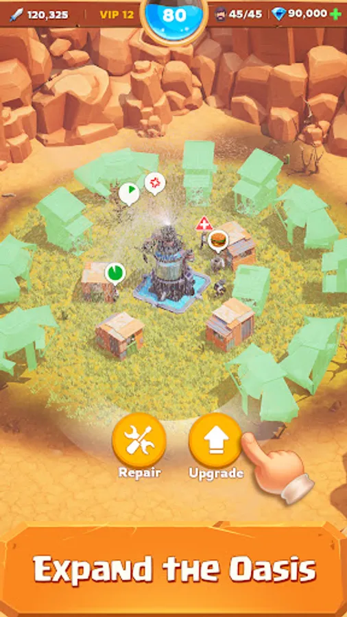 Water is your only weapon against the drought, so spare every last drop! Upgrade the storage tanks and keep a close eye on your stores to ensure the survivors can survive this baking new reality. Only then can your oasis camp stand a chance of developing into something.
