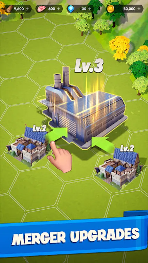 Enjoy the thrill of making new things, whether it's a building, skill, or troop unit. Say goodbye to boring old waiting times. Just merge and upgrade immediately!