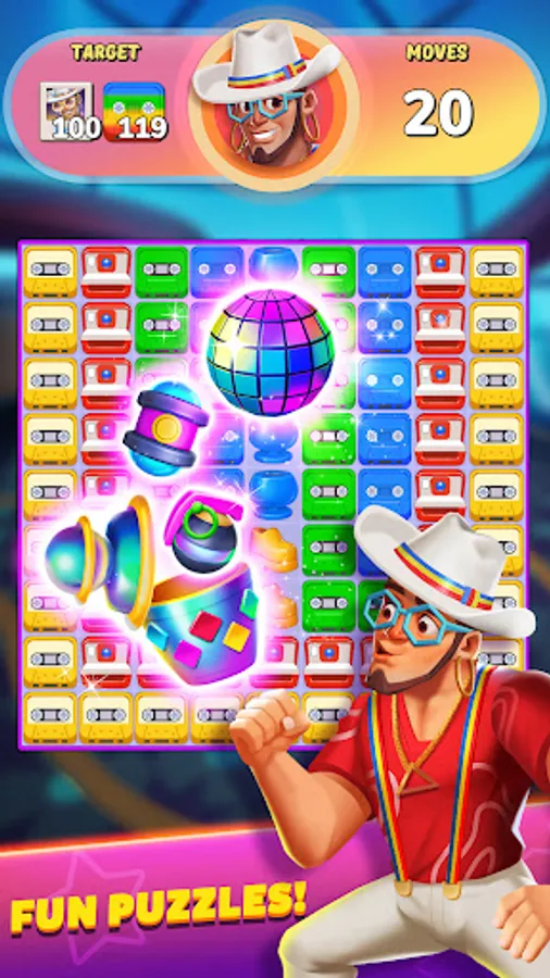 Join Brandon and Wendy on their journey to bring people together with disco! Beat match-3 levels, unlock unique areas and decorate them in a colorful disco style. What are you waiting for? Jump on the dance floor and join the disco fun!
