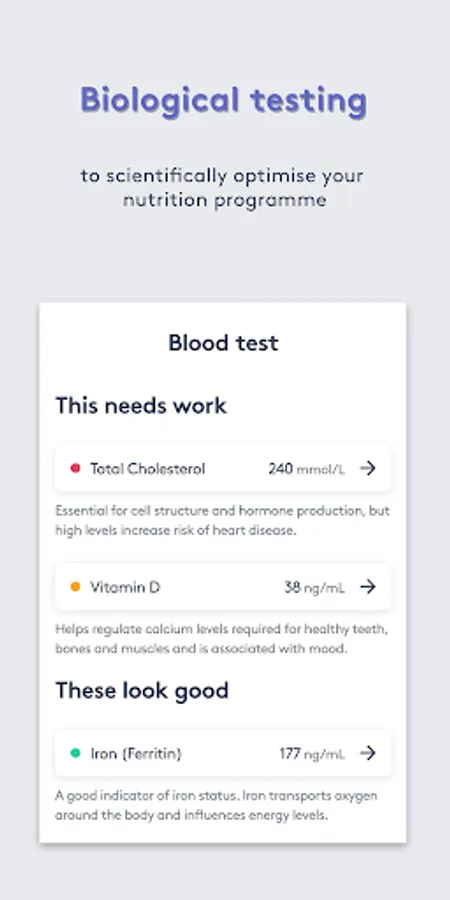 If you purchase the optional biological testing the app together with your health coach will help you understand your microbiome, blood, DNA and a range of other test results and provide an evidence-based programme covering key changes you need to make to achieve your health goals, whether it is to lose weight, improve your heart health, be more energetic, improve fitness, address a specific health condition or just improve overall health. You can increase the personalisation even further by connecting to Google Fit and sharing your activity and other health data.
