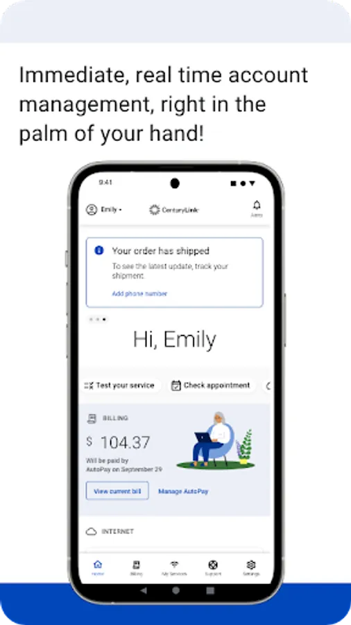 • Get personalized alerts, so you can see the status of your order, or find out if there is an interruption to your Internet service.