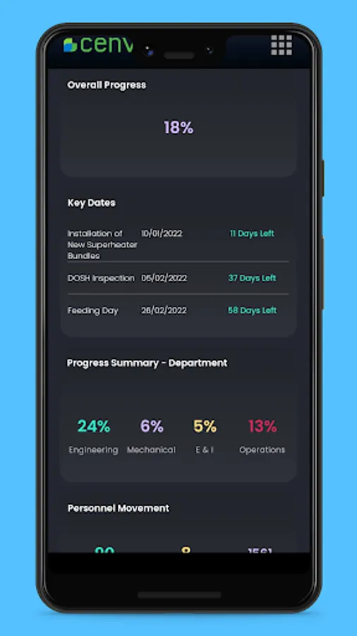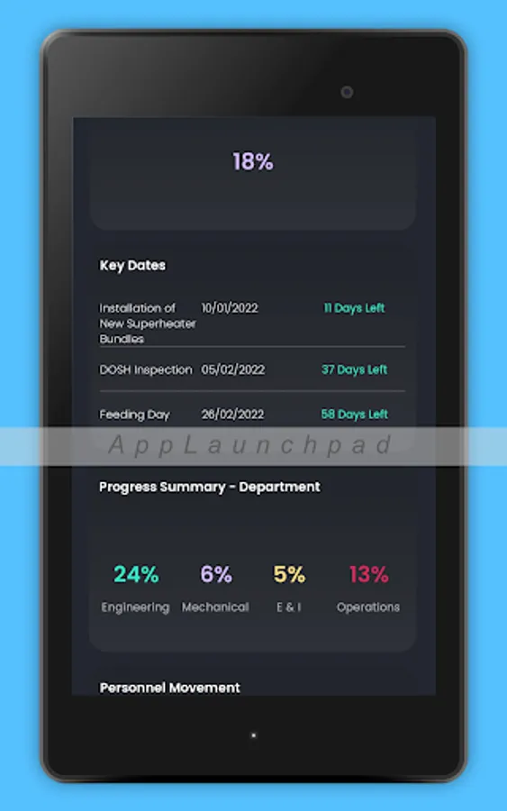 An app that can be used to manage and monitor plant shutdown activities and provide analysis on shutdown performance.