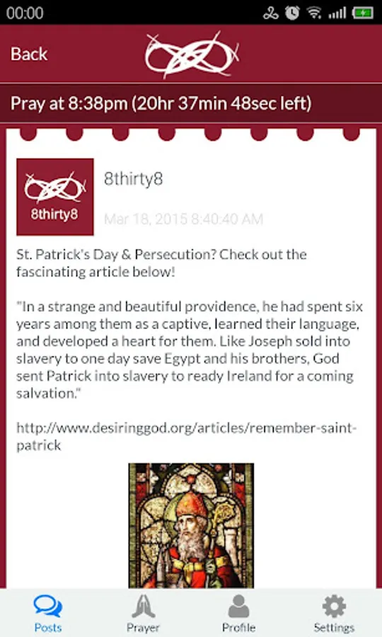 A group of American believers were in Jerusalem, when rockets hit just south of the Capital City. The first time they had hit since the '70s. 1800 rockets were fired into Israel during that week and many people in Syria were on the run during the horrific civil war. Ministry partners and close friends had also just been denied parole while in prison in Iran. On November 15, 2012 at 3:00 am, the Lord called one of the visiting American believers to pray. God directed this believer to set their watch to 8:38 each evening for focused prayer for those in prison, persecution, and danger.
