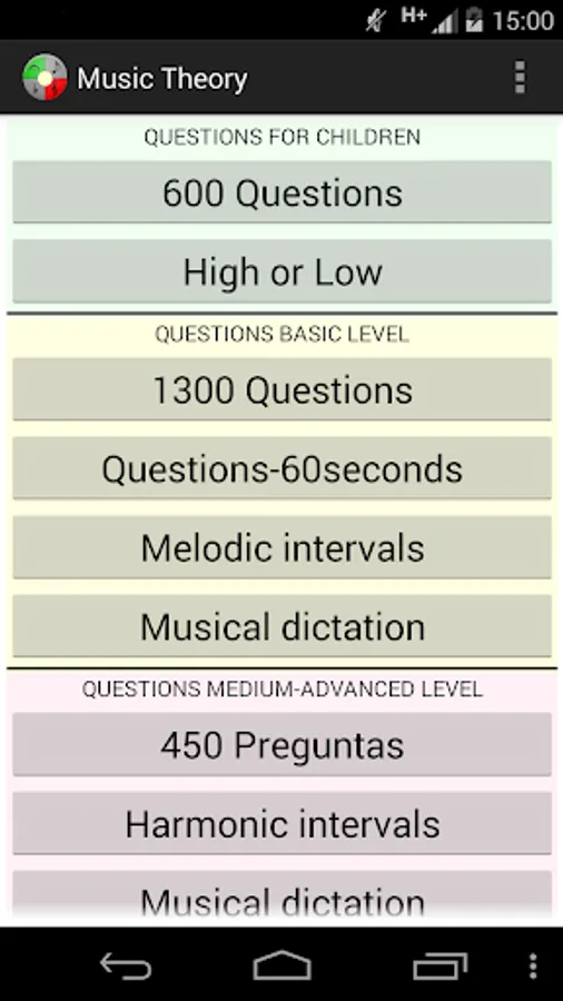 600 Questions is included within level for children and is designed so that the smallest are familiar with the musical concepts through images. The game is to try to resolve questions in each game played. You can send the results of your games to your friends via email or WhatsApp.