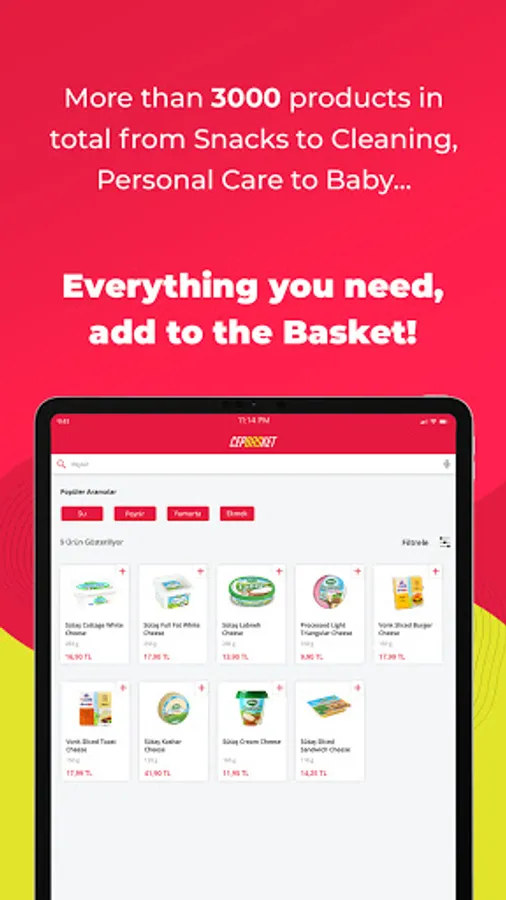 Cepbasket will ease your life! You can do your daily, weekly or monthly shopping just in minutes only with few touching, without even going out. We have changed the way of shopping for you to spend your precious time with your loved ones. We also consider the health criteria by separating product categories in different bags and bring them to you in a safest way. It is the best time to enjoy shopping with our constantly renewing special offers and discounts!