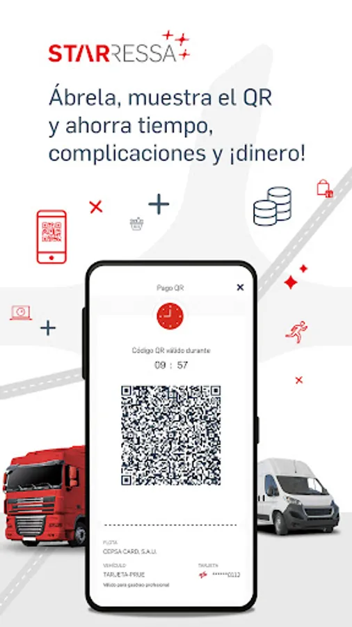 The app is a virtual payment card, so your company must have a STARRESSA Card registered for you in the Cepsa Reserved Area. Once it has been assigned, you will receive a notification from your account manager, and you will only need to follow a few simple steps to activate it and start paying with it.
