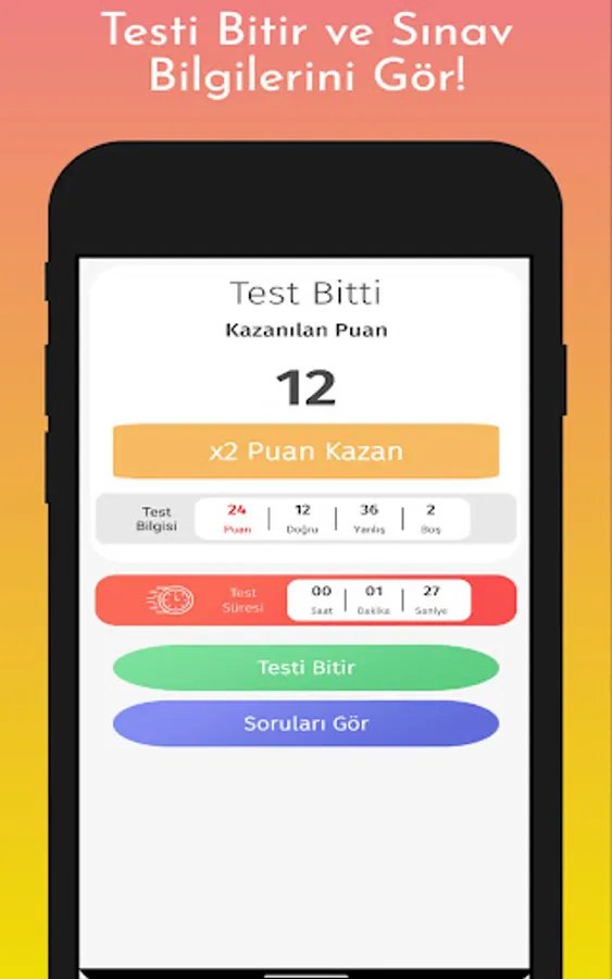 💥 You can make your score x2 by watching rewarded ads after the test.