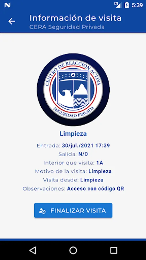 Application for CERA security guards, to automatically validate access to events or frequent uses.
