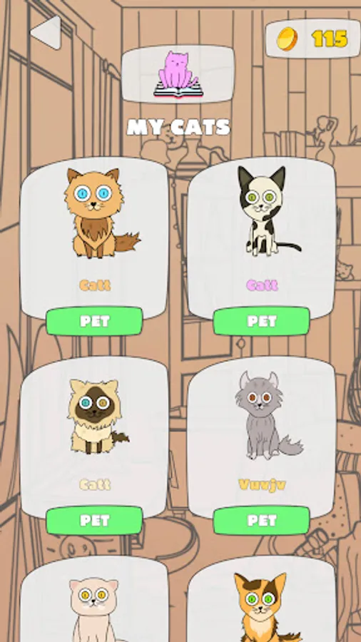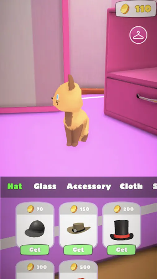 You can pet special cats and take care of them. Feed, play games, sleep, buy clothes and even give name to your cat.