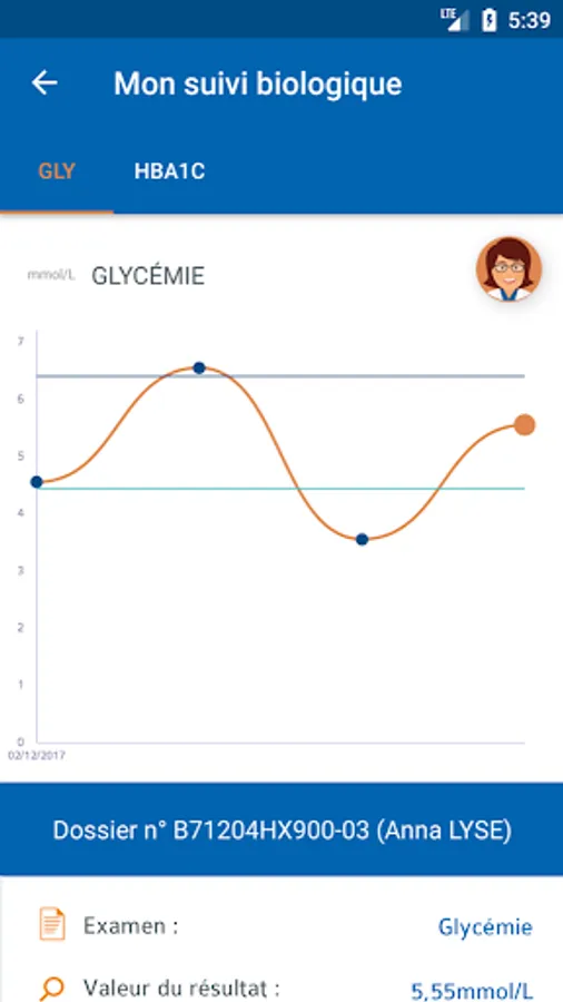 Some exams such as monitoring of blood glucose for example can be displayed graphically. You can easily monitor your health parameters.