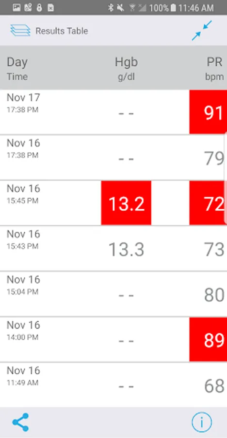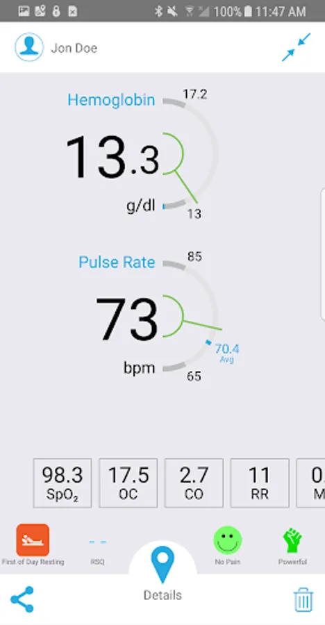 The Ember app allows users to track, trend and review their Hemoglobin, Pulse Rate, Perfusion Index, Oxygen Saturation, Oxygen Content, Respiration Rate, Pleth Variability Index, Carbon Monoxide and Methemoglobin . Track the activity you were participating in with every test to understand how your body, behavior, and training habits may affect your Hemoglobin levels. Every time you measure the app will also track the date and time of your test, the location and elevation of your test as well.