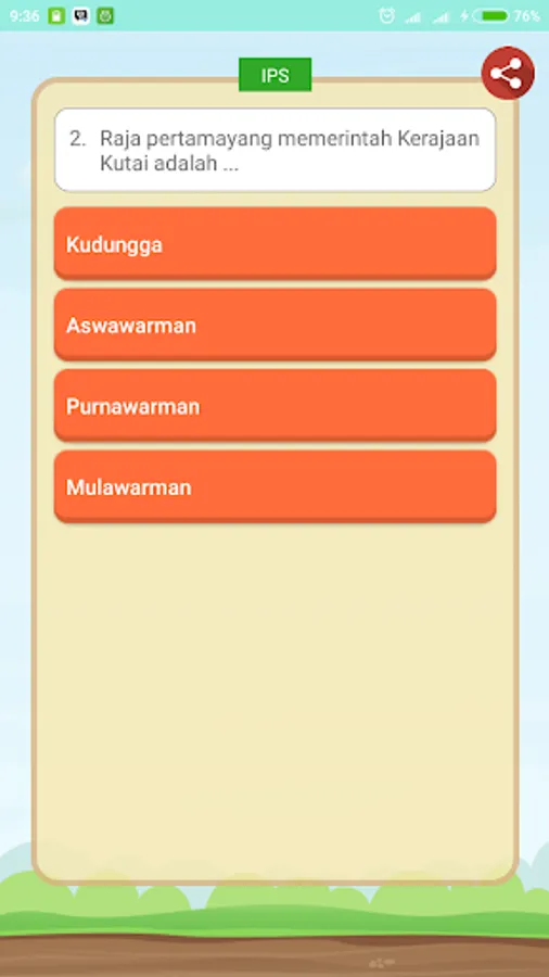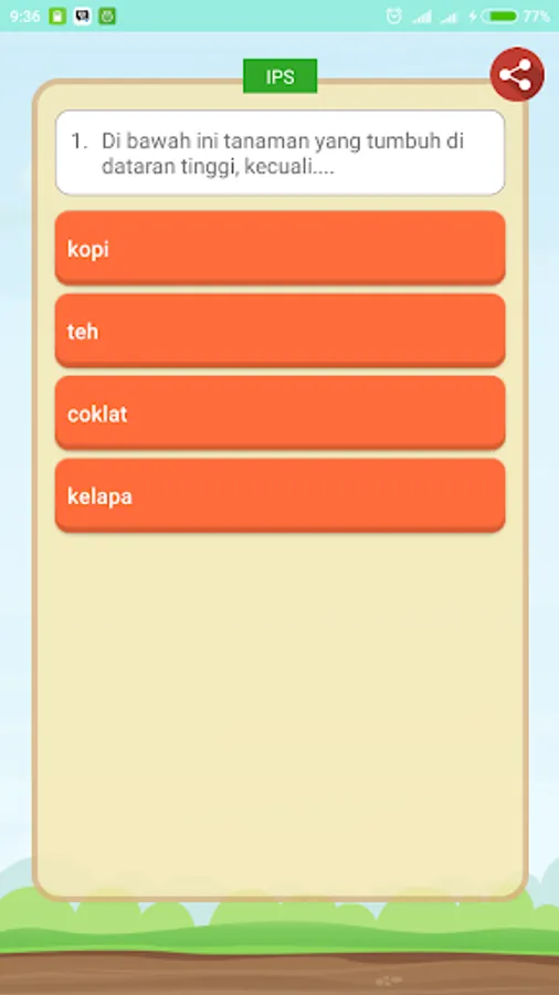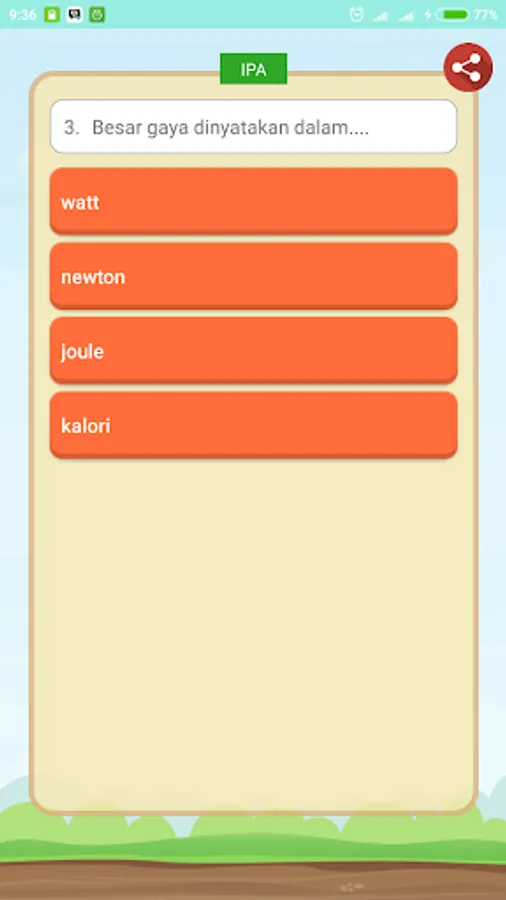 Form of matter in this application is a quiz or a multiple-choice quiz. This application is very useful for elementary students and parents who want to teach exercises to their children.
