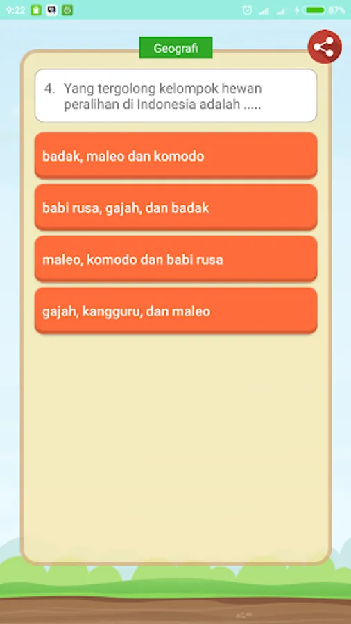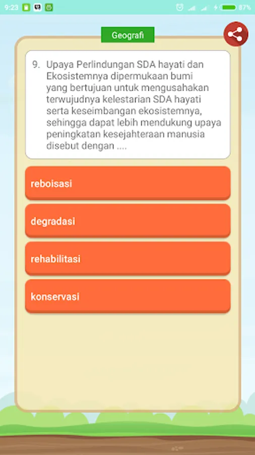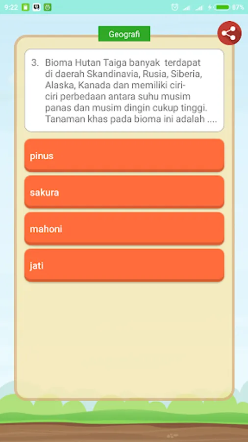 Form of matter in this application is a quiz or a multiple-choice quiz. This application is very useful for high school students or MA and parents who want to teach exercises to their children.