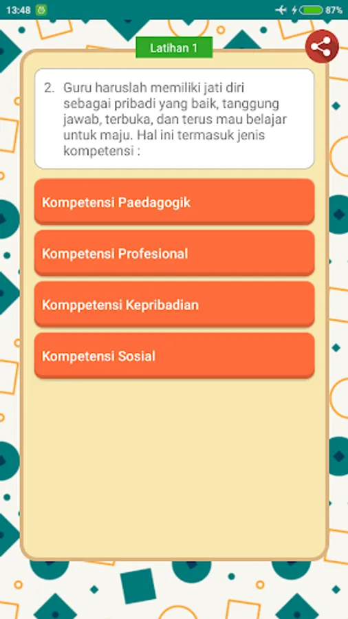 With this application, it is hoped that it can help teachers in taking teacher competency tests which are always held to improve the quality of a teacher.