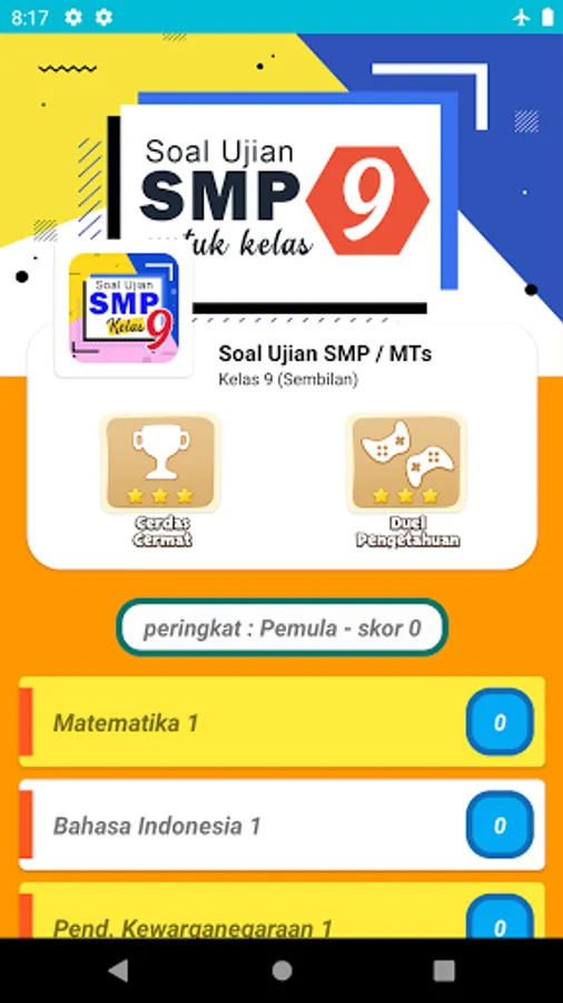 Exam Questions for Class 9 SMP and MTs is an application that contains a variety of final school exam questions for SMP and MTs (Madrasah Tsanawiyah) levels.