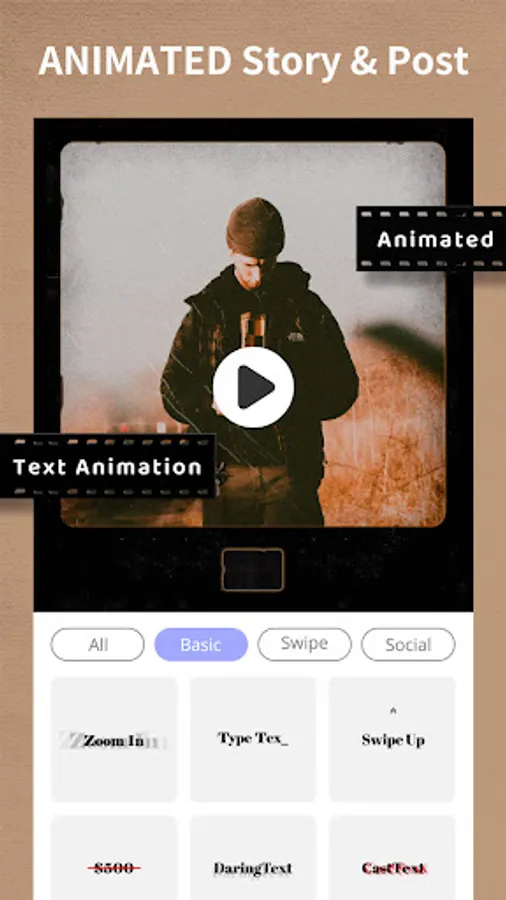 - Preset aesthetic animated story and post templates like minimal and film attract your fans at a glance!