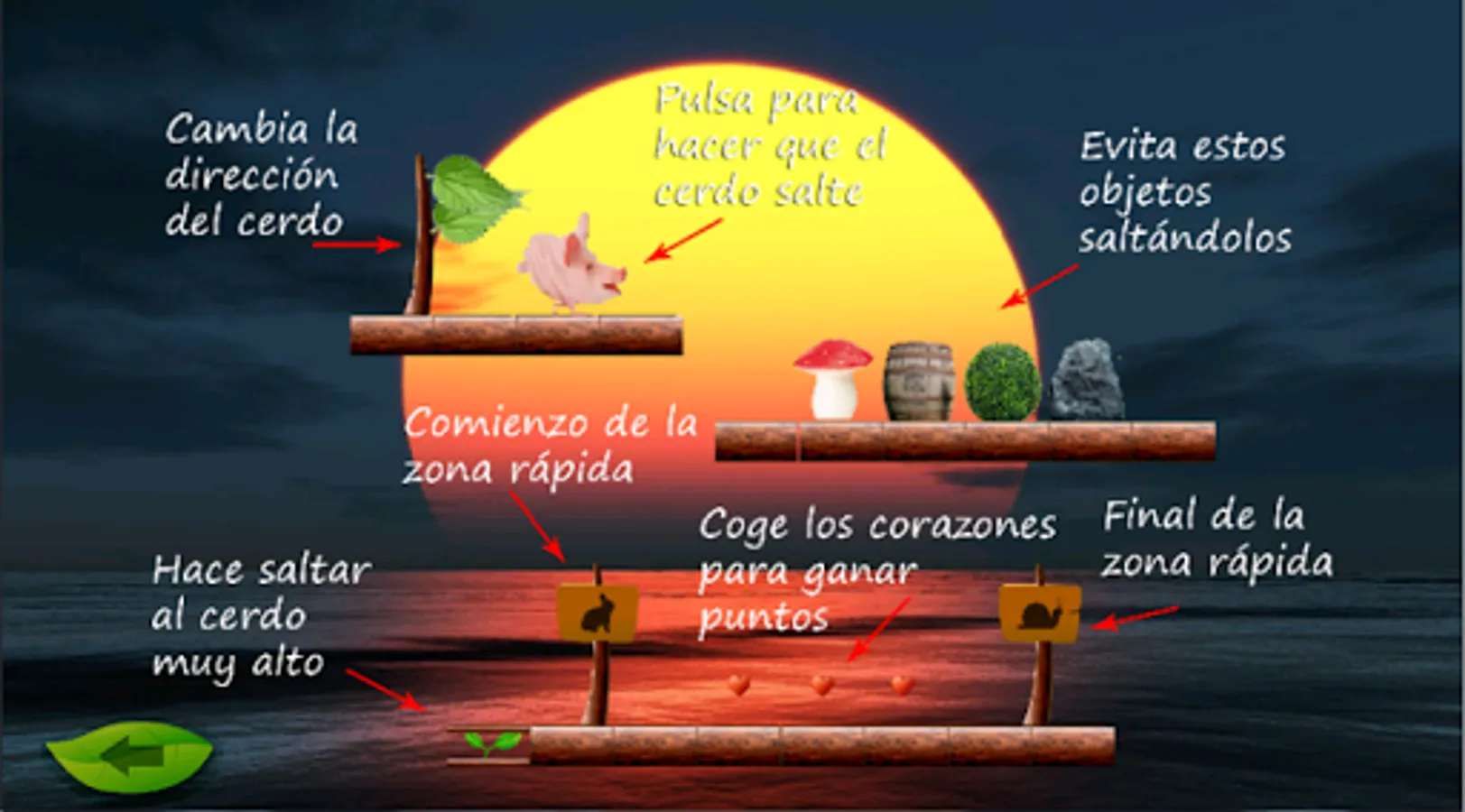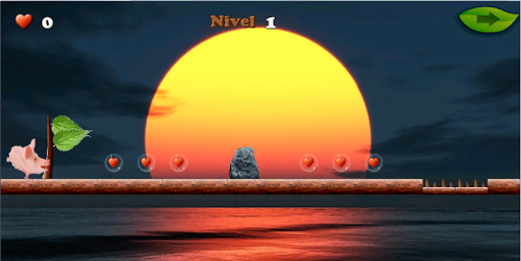 The Pig is in love and needs nourishment of hearts to keep alive the flame of passion, for it will run through the different levels where you will encounter many obstacles in their path (shrubs, rocks, mushrooms and barrels) other escoyos will be included in your path (ground spikes or different levels on the ground)