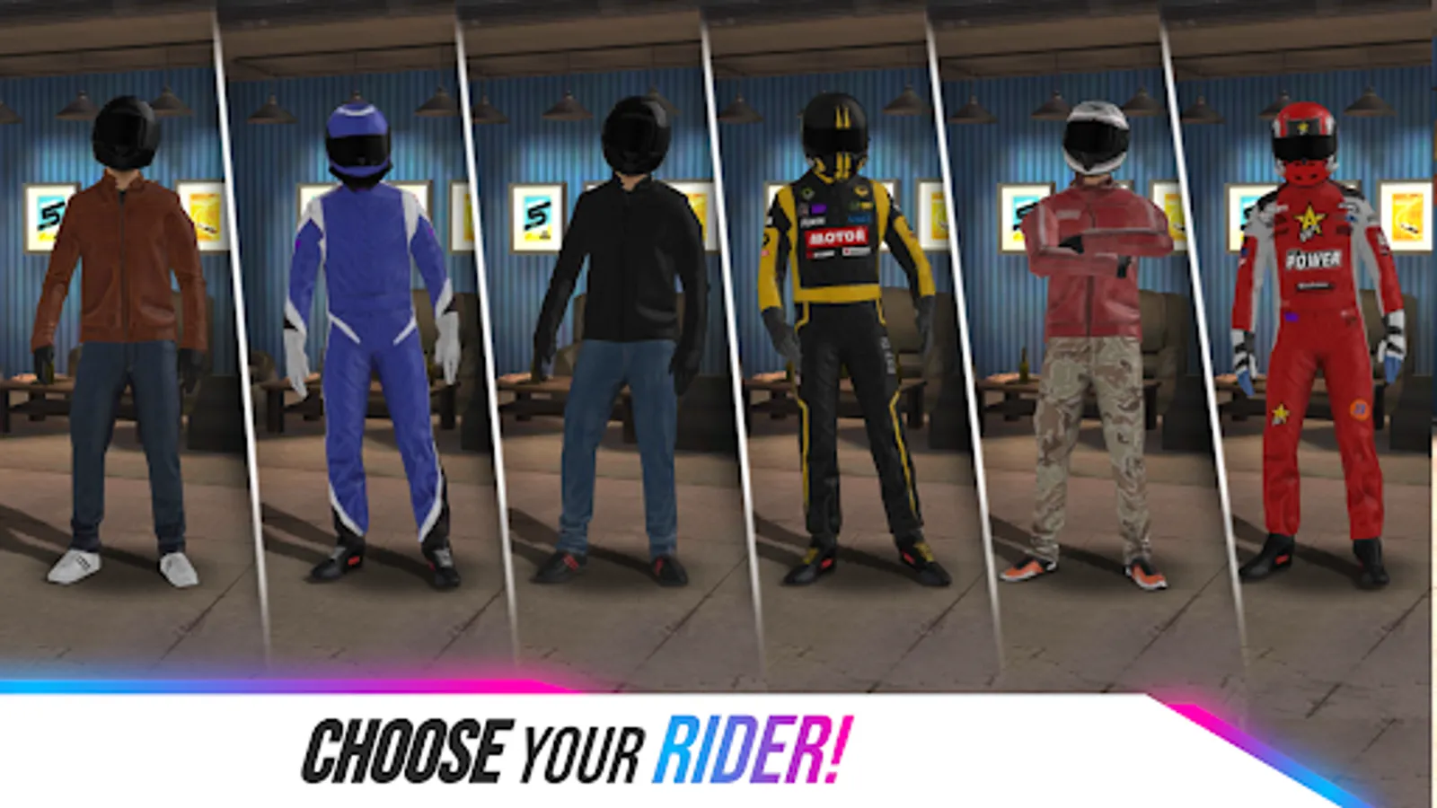 Drive the entire range of motorcycles available in Motorcycle Real Race. Do you like to feel the speed like you are a motogp rider? Or do you prefer to drive off road with a motocross through the countryside? Whatever is your favorite motorcycle, in this motorcycle games we have them all!✪ CHOOSE YOUR FAVORITE CHARACTER
