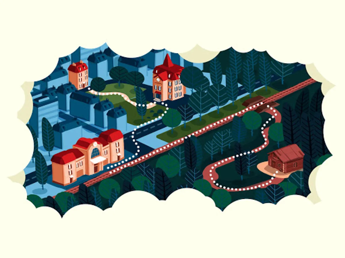 This fun journey begins at Melissa’s house and continues step by step to the spooky forest hut.