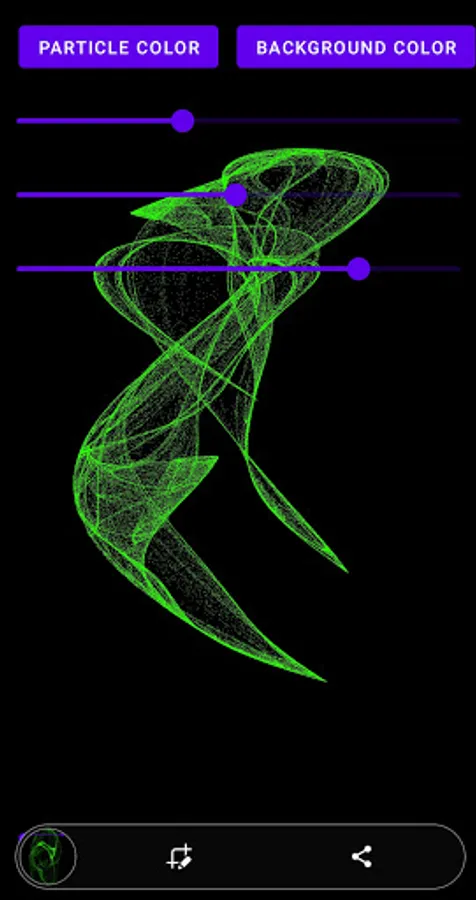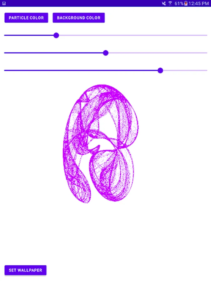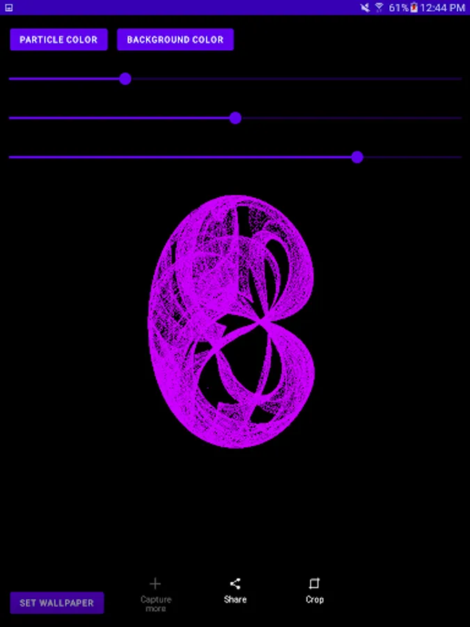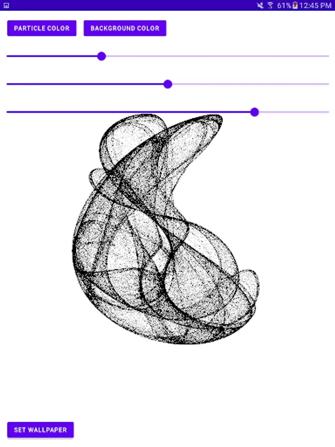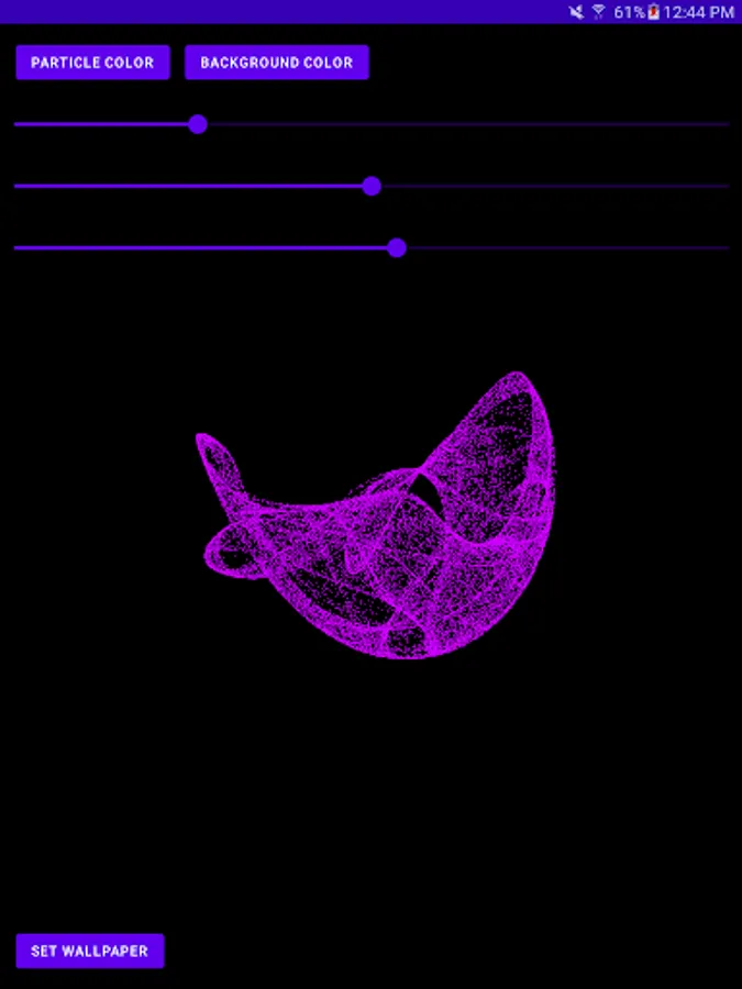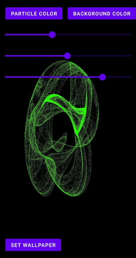 A customizable live wallpaper of swirling particle figurines. Select a particle color, background color, figure size and speed, and the number of particles and set your new wallpaper.