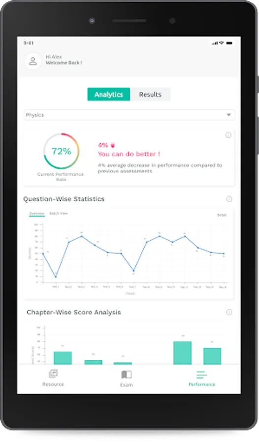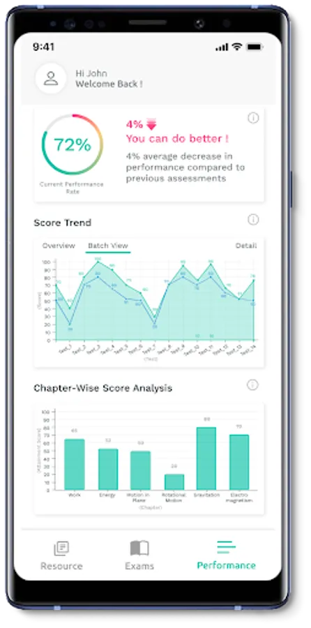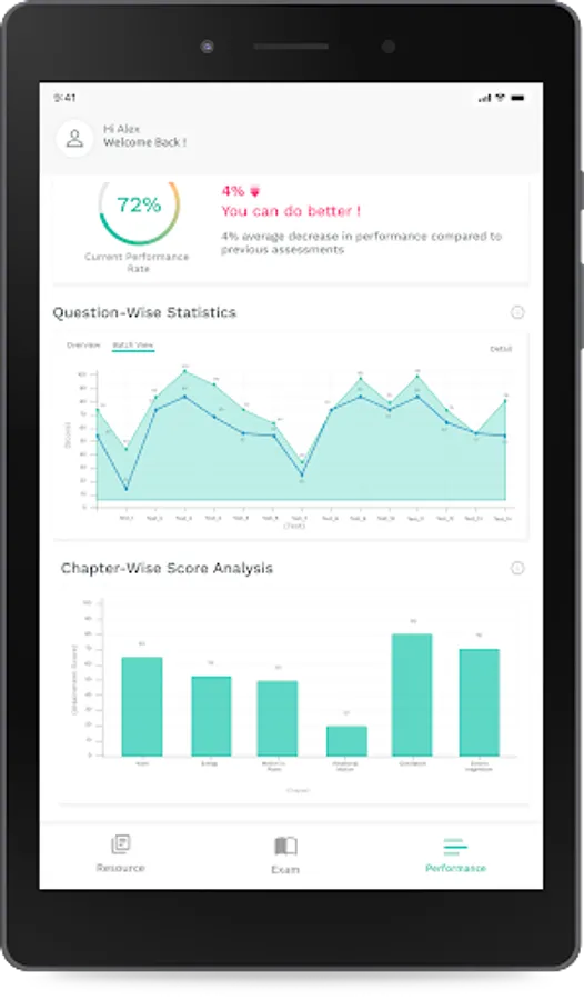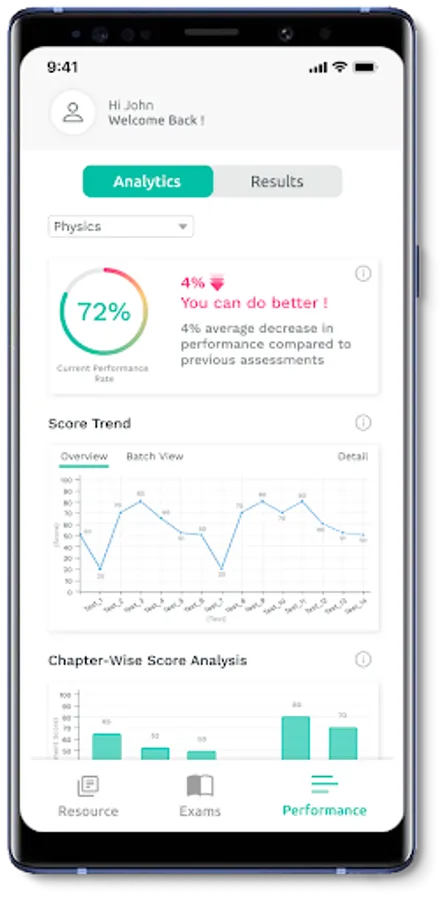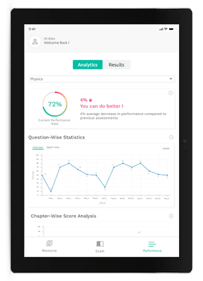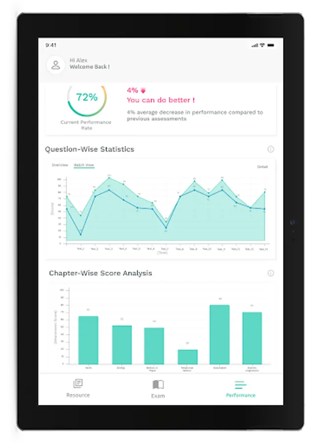 - Performance Analytics: Analysis of a learner’s performance over a period of time with respect to their overall performance, subject-wise performance, and in contrast with the cohort.