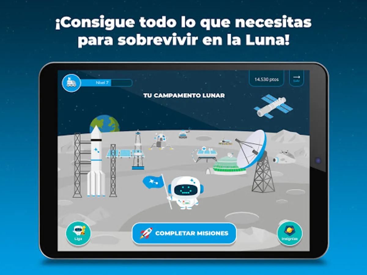 The objective of the game is to build your own lunar camp to survive on the moon. To get the necessary elements for their camp, students must complete short educational itineraries that serve to expand their spatial knowledge. For each completed mission, the student will receive a badge and a new item to add to their lunar camp.