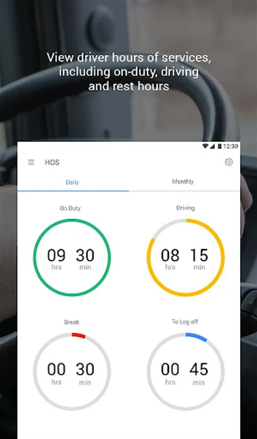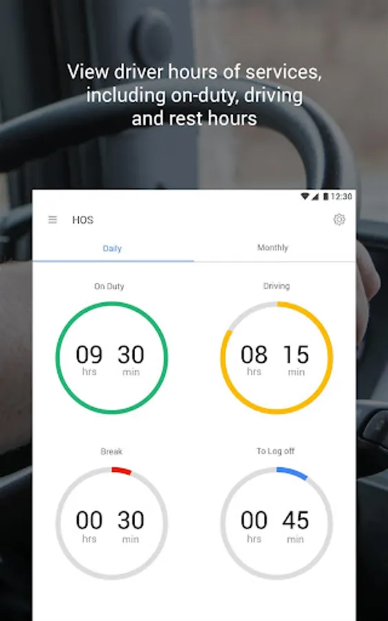 2. Switch to on-duty, driving and break/rest mode to maintain daily hours-of-service.