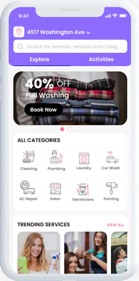 Wide range of categories for all your needs. It is an all-in-one app- app to hire handyman, best dog walking app, salon booking app, car wash app, home repair services app, home cleaning service app, pest control app, etc.