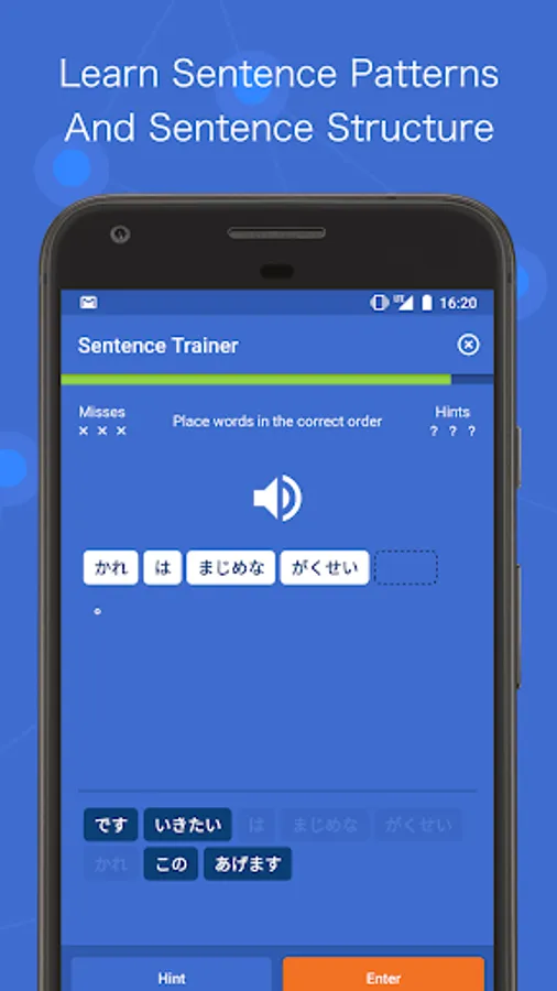 - Sentence Trainer: Master sentence patterns and constructions.