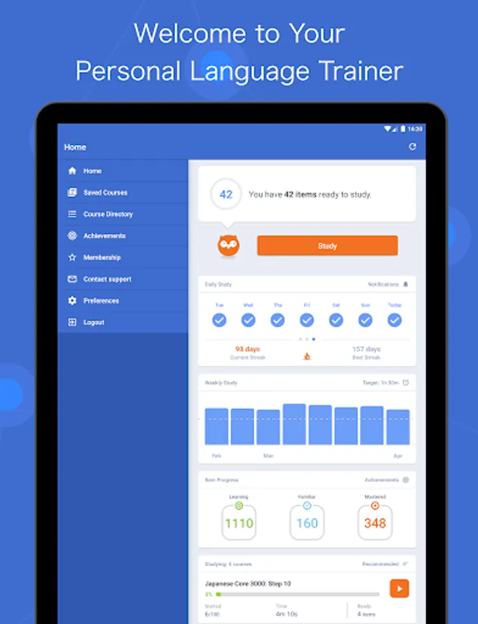 Your iKnow! study progress on your Android device is automatically synched to your PC account, so you can study in the way that best matches your needs and lifestyle.