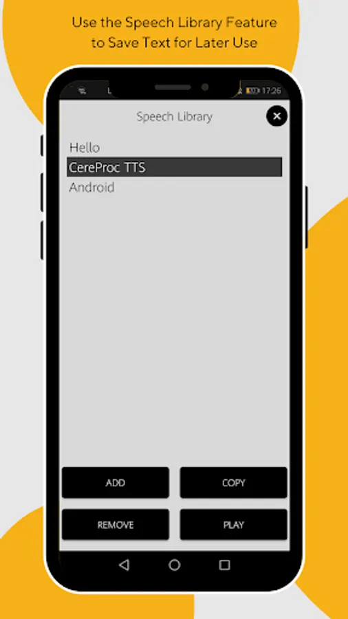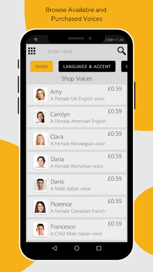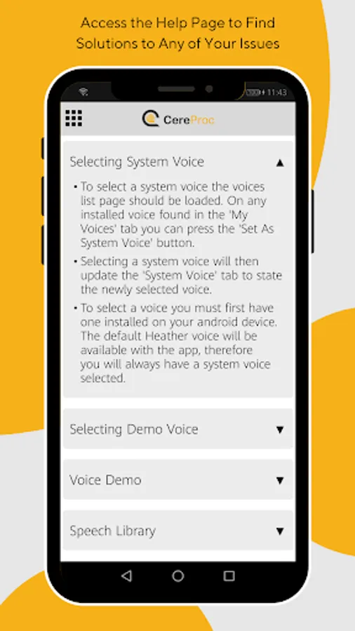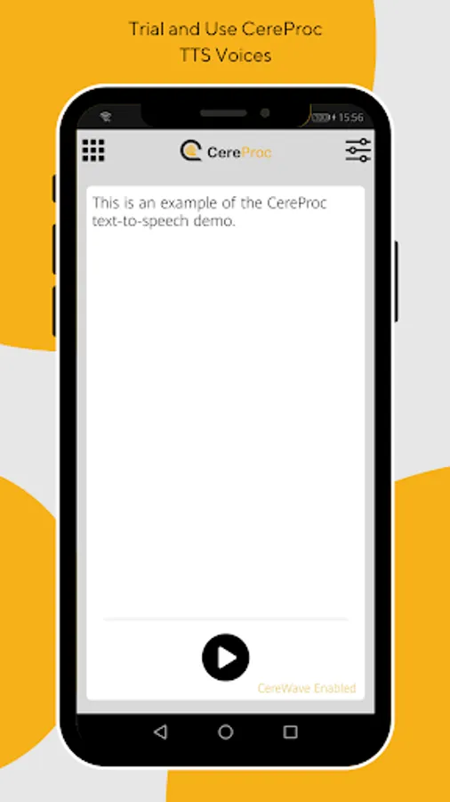 CereProc's mobile app that allows users to trial and use voices on Android devices.