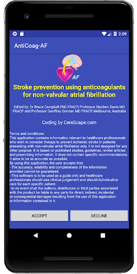 This application is for medical practitioners who need to quickly review which anticoagulant (including the direct oral anticoagulants (DOACs)) to use to prevent stroke in patients with non-valvular atrial fibrillation (NVAF).