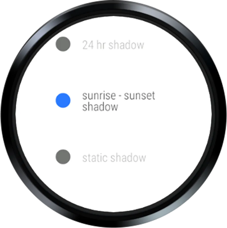 Select either static or dynamic Gnomon shadow (static by default) from the watch settings (more battery usage).
