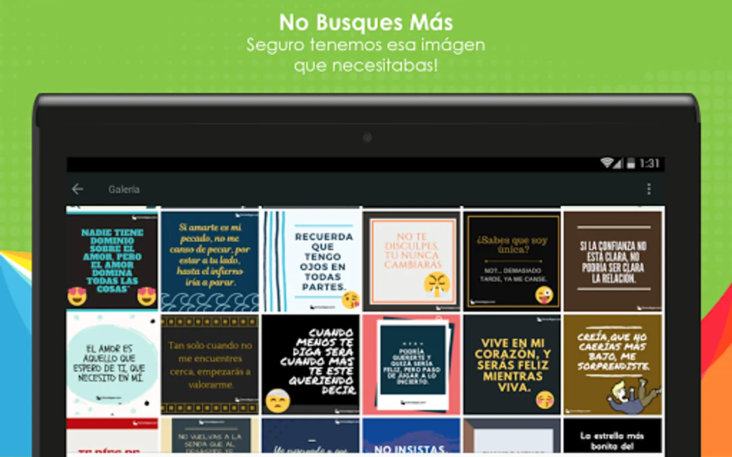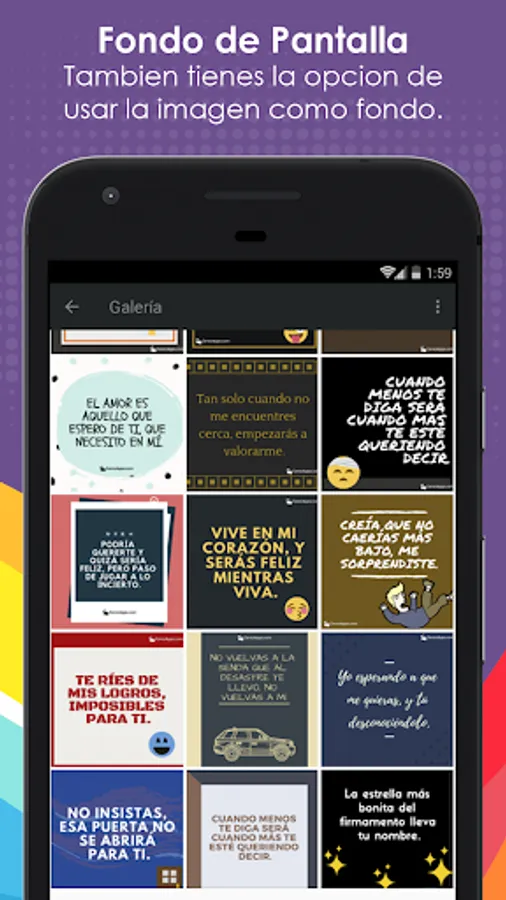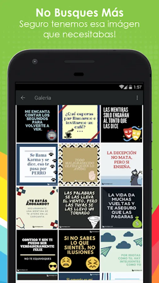 We guarantee that every day we strive to create current content, with which you feel fully identified, so downloading our app will be an ideal option to renew your funds and thoughts. Enjoy sharing those strong phrases and constantly update your world.