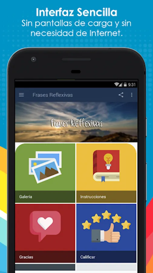 ❝ Reflexive Phrases place at your fingertips the best phrases and images of the network, with which you can analyze situations and send those conclusive messages with which you can overcome every event that occurs in your life.